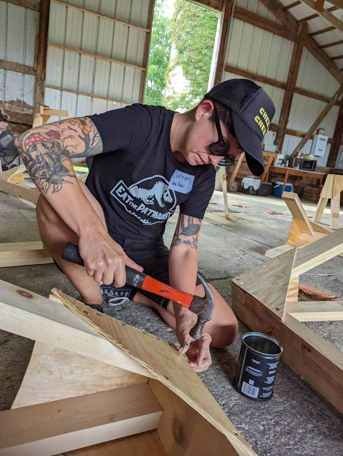 For Suz, creating a safe space for students to try, fail, and try again is key, often modeling vulnerability by sharing their own mistakes. Their favorite tool is the speed square (“I learn something new about it in every class!”), and if Suz had a superhero alter ego, they’d be the Empowerment Beam, “spreading courage, skills, and self-reliance with a single smile or gesture.” Their advice to anyone considering a Hammerstone class? Do it—it will be the best investment you make in yourself!